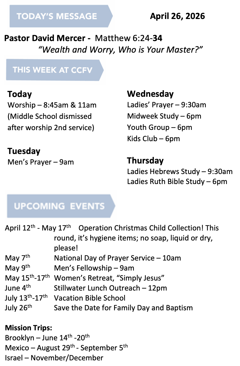 To view PDF version of this week's bulletin:
